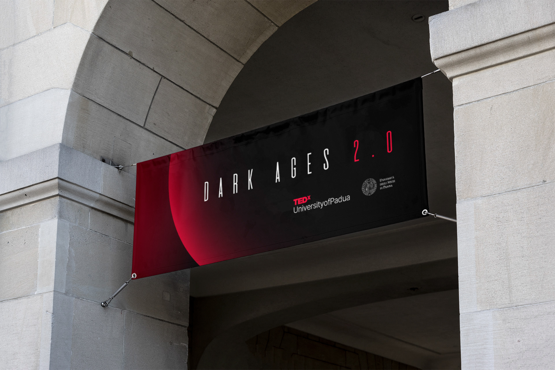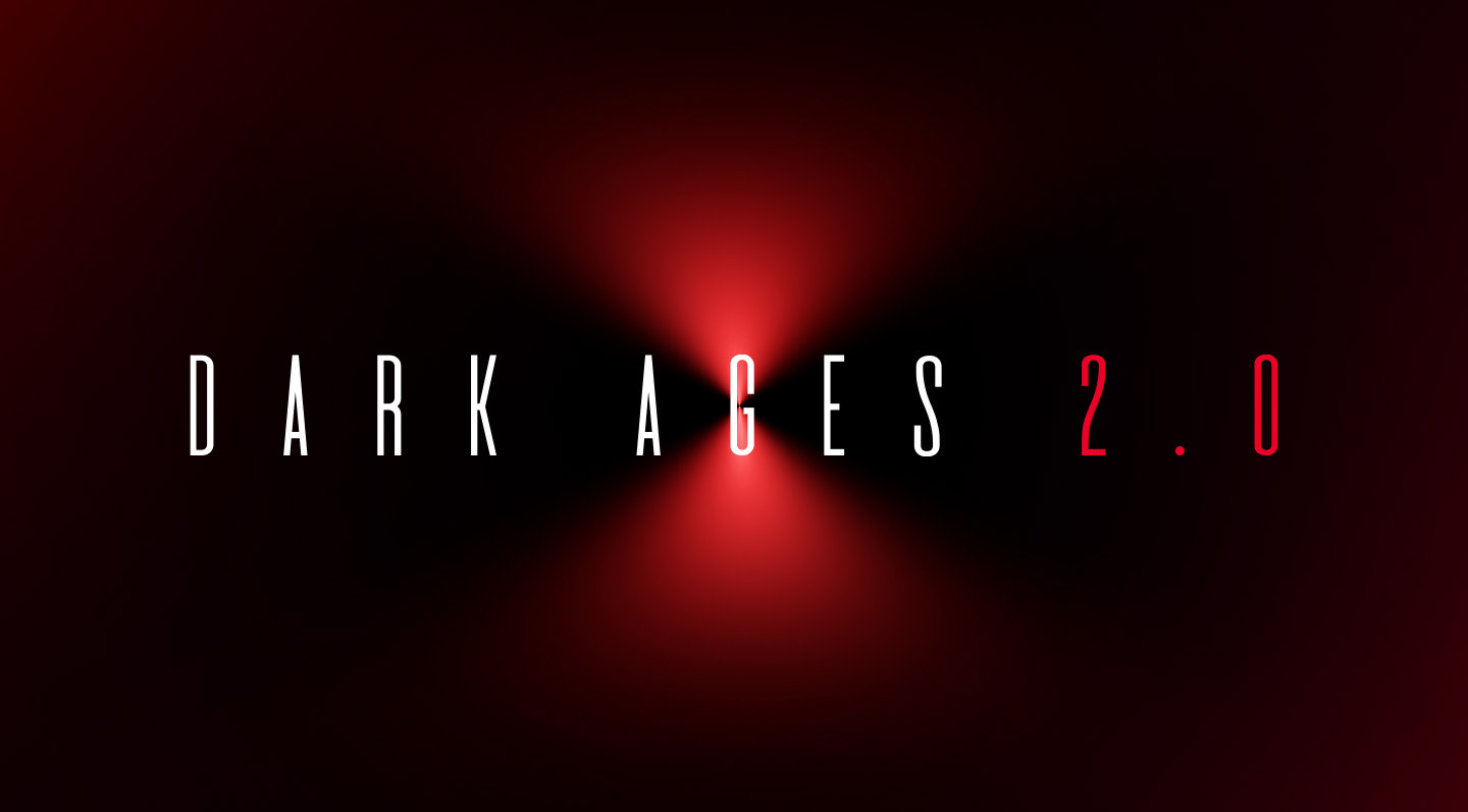 The core strategy was to reframe the "Dark Ages" as a modern time ripe for a new enlightenment, moving past digital noise and misinformation. The visual design supports this with a dramatic contrast: a black background representing darkness, from which a vibrant, curved red sphere emerges, symbolizing a new dawn or a bold idea. This central metaphor is crucial to the event's identity.