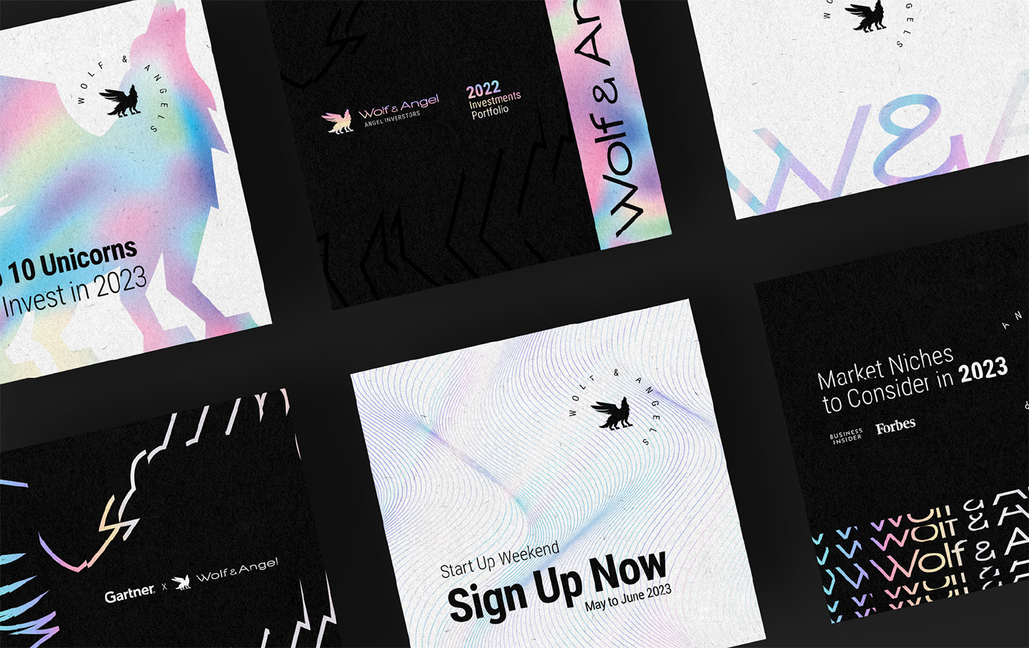 The Wolf & Angel brand identity design project aims to create a captivating and magical visual representation for an angel investment company. The brand identity will incorporate holographic elements to convey a sense of enchantment and evoke a feeling of wonder and possibility. The design will serve as a powerful tool to establish a strong brand presence and communicate the company's core values, expertise, and strategic approach.